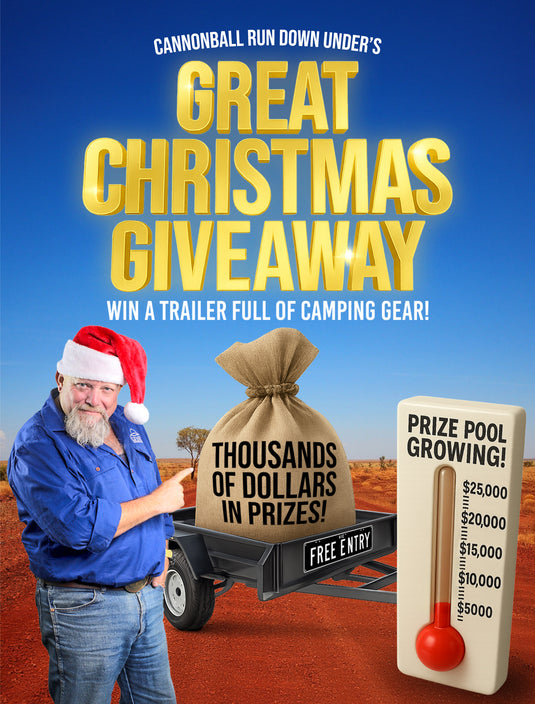 Starts 9:00 AM AEST 11/10/25. Ends 3:00 PM AEST 14/12/25. Open to AUST residents (except SA) 16+ who fulfil the entry/eligibility requirements. Enter at cannonballrunddownunder.com.au or caravancamping.com.au for your chance to win a Trailer and 7x4 box trailer products valued up to $31,000. Total prize pool is up to $31,000 (inc GST). Prize draw 3:30 PM AEST 14/12/25. Winner notified via email & phone by 16/12/25 and published at cannonballrunauction.com.au on 21/12/25. Promoter is Vibe Vision Media Productions. ABN 51 678 079 895. 100 Parkyn Pde Mooloolaba QLD 4556. Authorised under NSW Authority No. TP/04663 and ACT Permit No. TP 25/02447. For full T&Cs refer to cannonballrunddownunder.com.au.